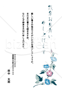 水色の朝顔を描いた暑中見舞い・残暑見舞いの短冊熨斗紙熨斗紙素材館。