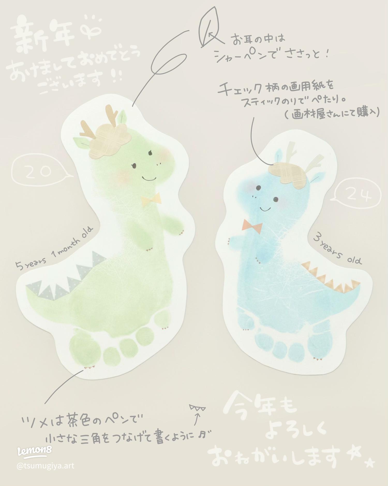お正月工作 2024年の干支『辰』を手足形アートで作ろう!成長の記録にもGOOD!&あんふぁん。