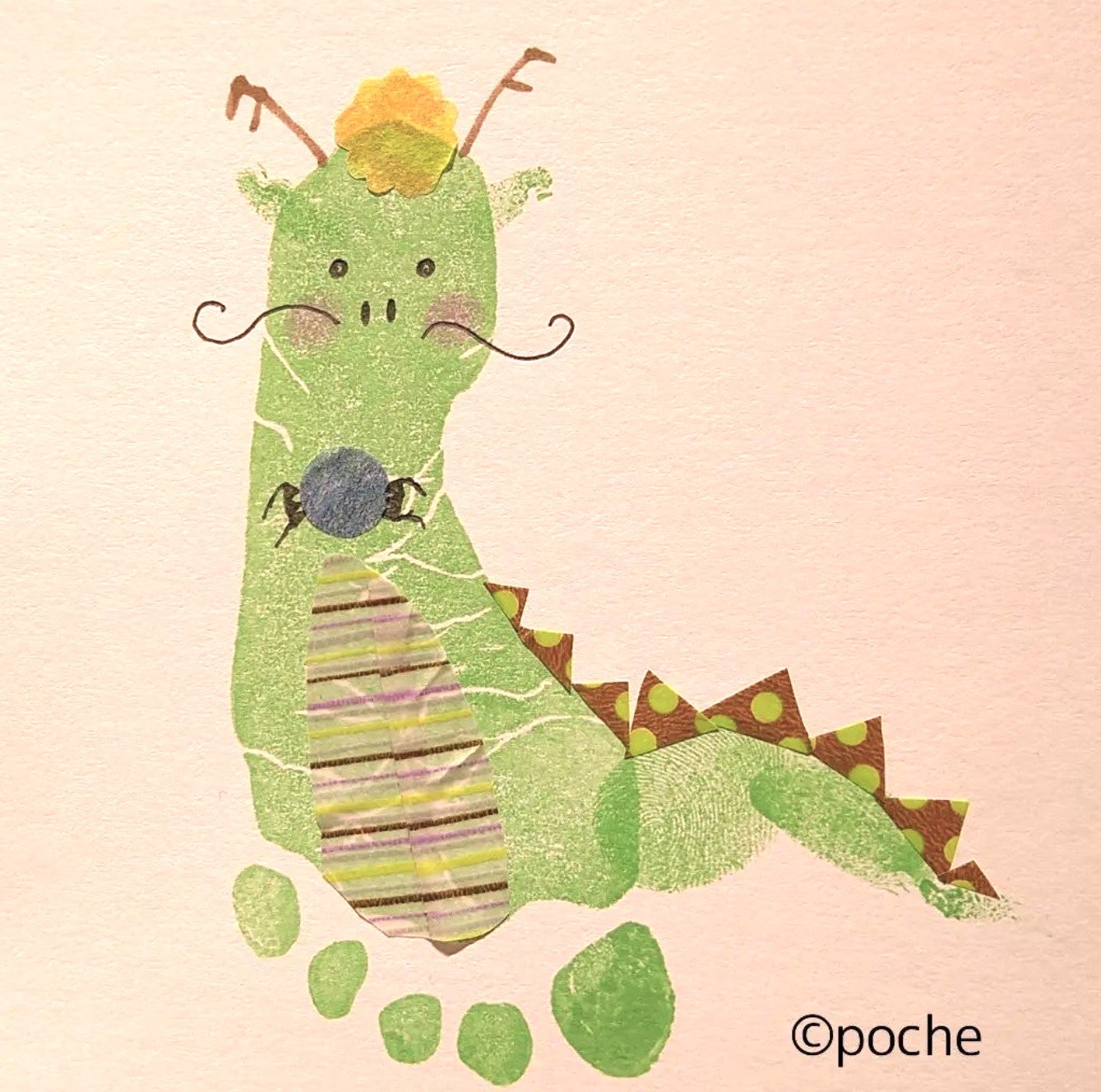 足形アートで辰のモチーフを作る方法。