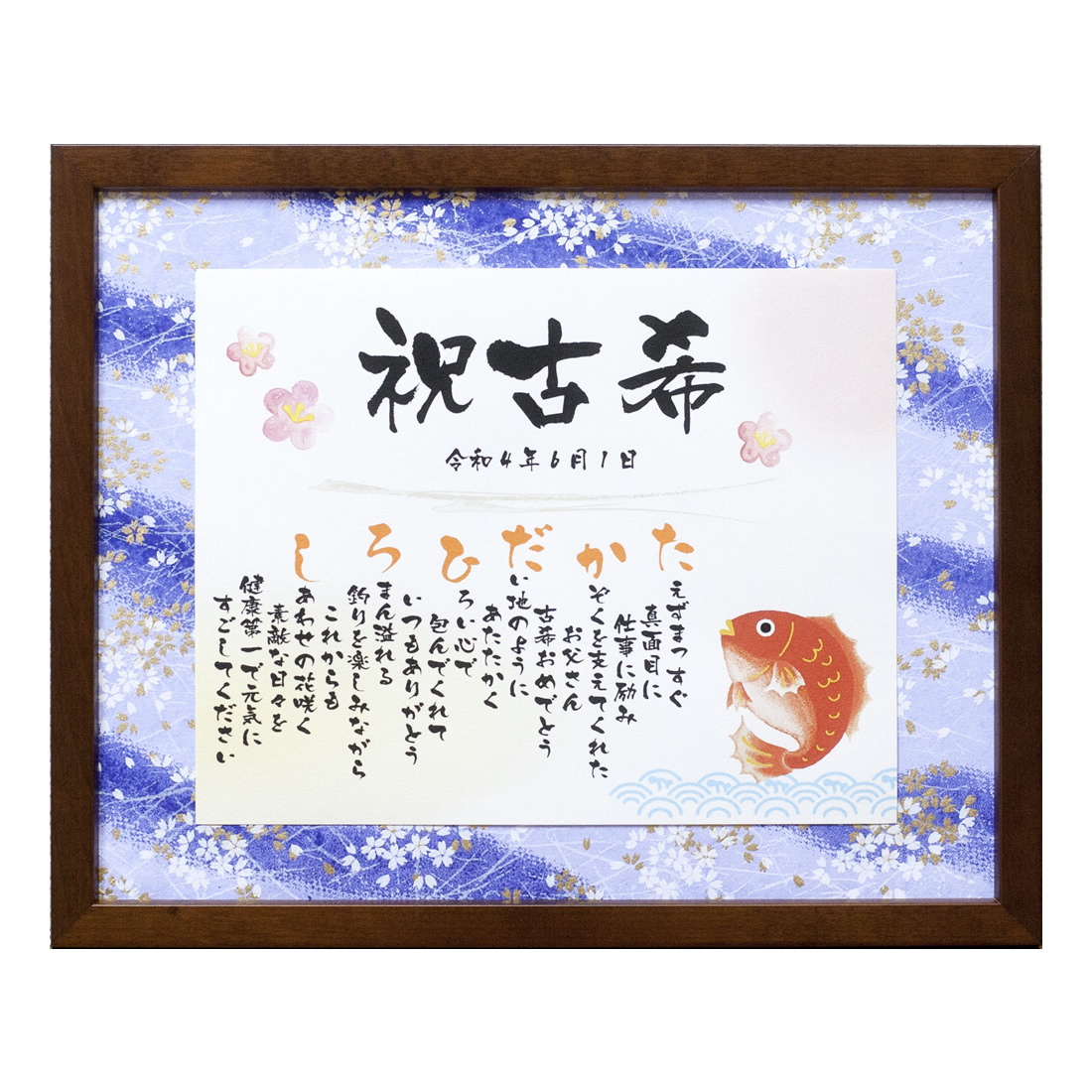 古希祝い 感謝 プレゼント 名前詩 友禅和紙タイプ Mサイズ 母の日 父の日 名前メッセージポエム 70歳 誕生日 上司 友人 父 母 おじいちゃんおばあちゃん 男性 女性 お母さん ネームポエム。