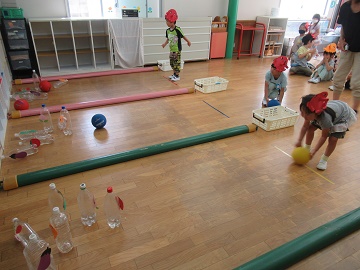 7月16日夏祭りの遊びを真似て遊びました 桑折町。