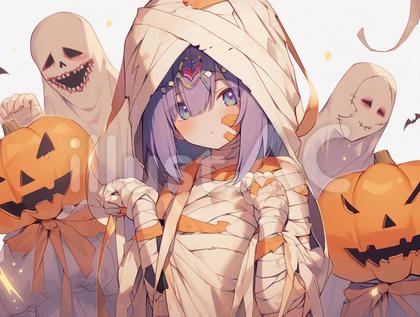 ハロウィン_ミイラ女の子キャラ&ゴーストのイラスト素材25639736- PIXTA。