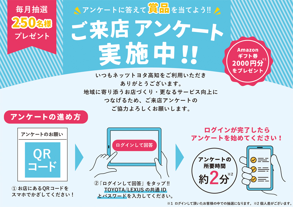 実施中 ご来店アンケート実施中!お知らせネッツトヨタ高知株式会社。
