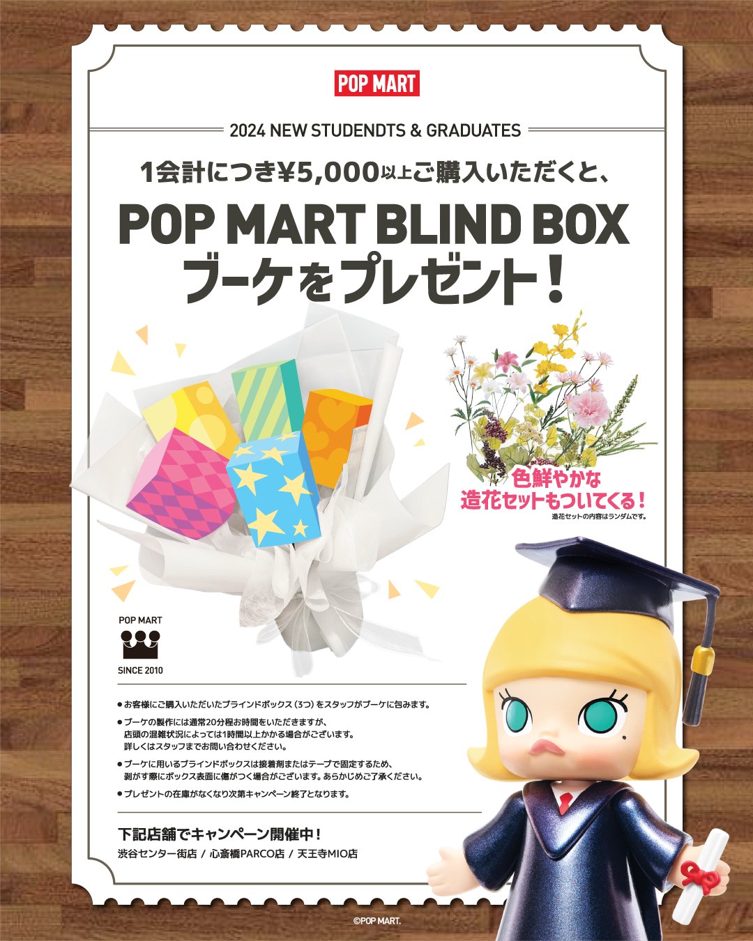 POP MART JAPAN on X: "🌸🌸卒業・入学おめでとう🌸🌸特別な日のお祝いに、心に残るギフトはいかがですか?✨POPMARTのブラインドボック ブーケキャンペーン開催中💐素敵なフィギュアブーケで、大切な人への気持ちを届けます。 この機会にぜひご来店ください🫶 📍開催。