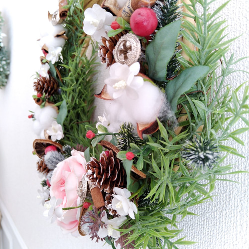 リース フラワーリース 冬 クリスマス CMナチュラルリース L ホリデーポップ 造花アレンジ100均夏。