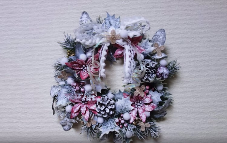 100均の造花だけで「クリスマスリース」を簡単DIY : pink pinko life。