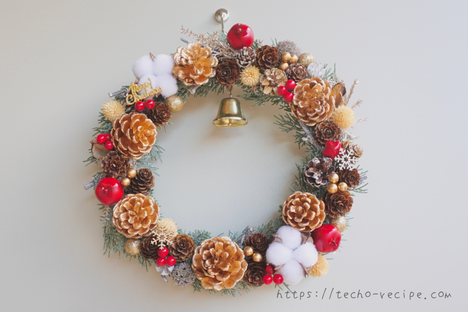 800円で完成!100均「ダイソー」で作るクリスマスリース - ハンドメイドノート。