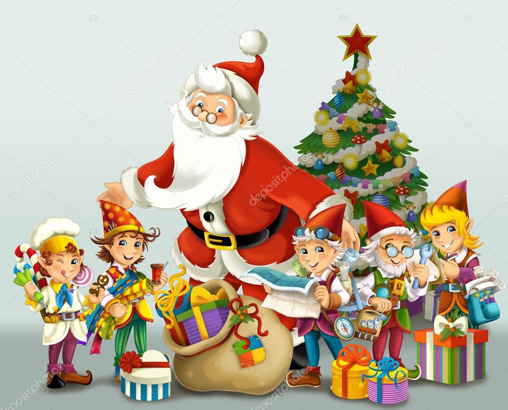 サンタ クロース - クリスマス ツリー - と人の小人— ストックイラストレーション by © agaes808026898745。