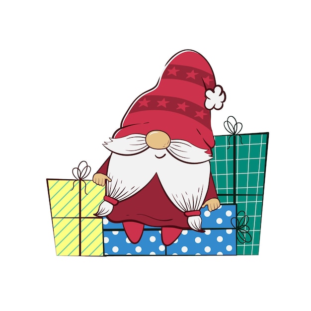 漫画, クリスマス, gnome, ベクトル, イラスト, の, かわいい, 小人, 上に, a, 白, 背景Premiumベクトル素材。