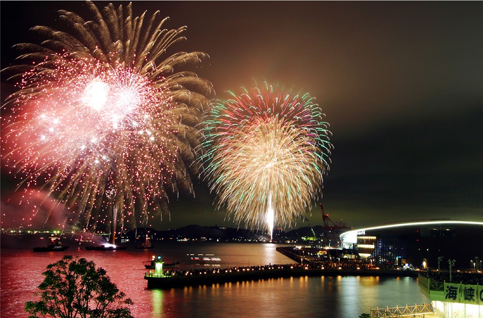 関門海峡花火大会海峡の両岸から15000発の花火が打ち上がる 西日本屈指の花火大会 門司たびらい。