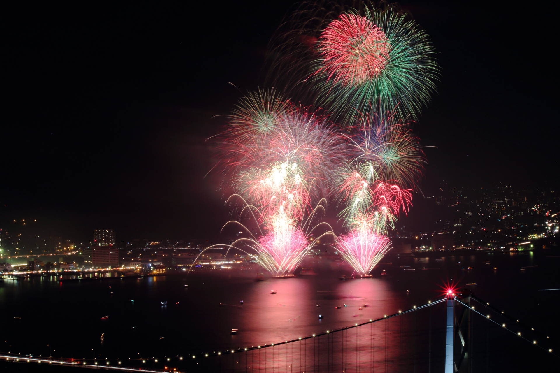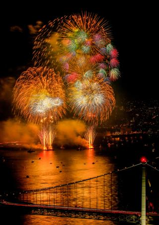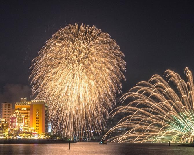 関門海峡花火大会門司港・下関。