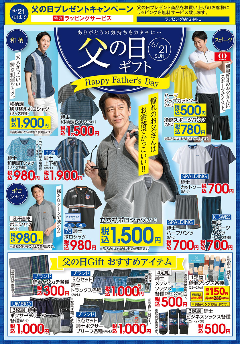 パシオス on X: "📢21日 日 までのチラシ掲載 6 21は父の日ですね!父の日ギフト特集ではファッションアイテムからハンカチ 、インナー アイテムまで、プレゼントにぴったりのアイテムを取り揃えております♪ 詳細はコチラ ↓ https:t.co WxqTbSNExdパシオス。