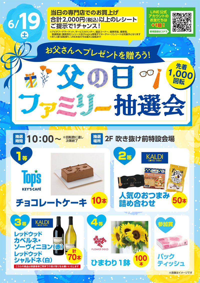 PR 家族で楽しむ父の日をアピタテラスで、6 19 土 にファミリー抽選会横浜日吉新聞。