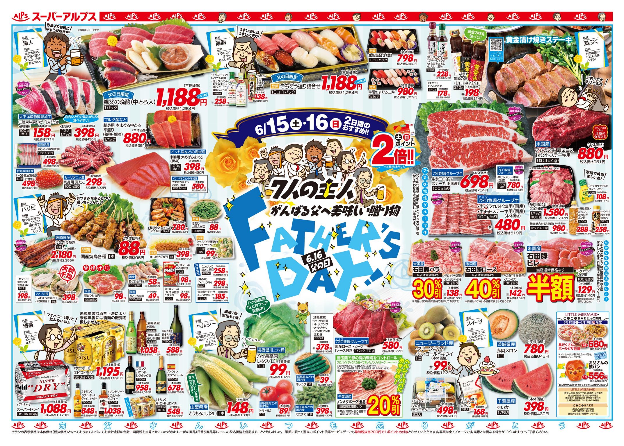 ノンメタポーク on X: "6月16日は父の日ですね♪スーパーアルプス さんで父の日の特売チラシにノンメタポークが掲載されています♪お買い得ですよ~♪ノンメタポーク千葉大学豚肉ヘルシー https:t.co miAP6erfsq"X。