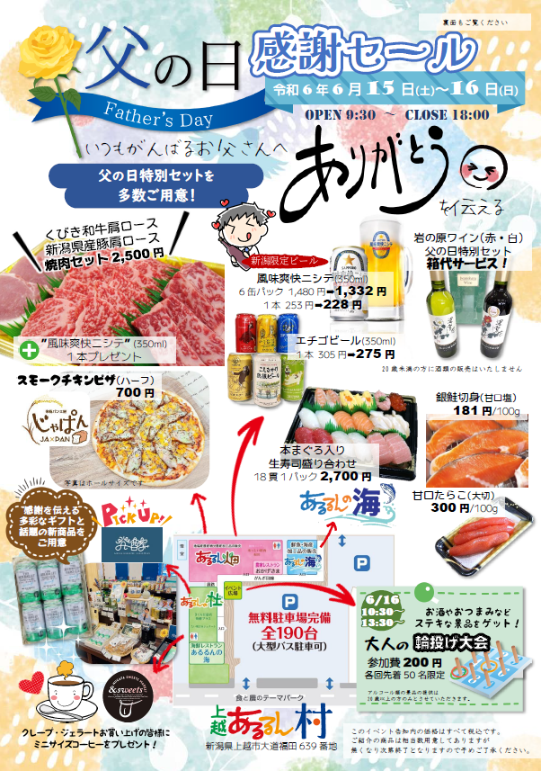 父の日感謝セール」開催!お知らせ・新着情報上越あるるん村。