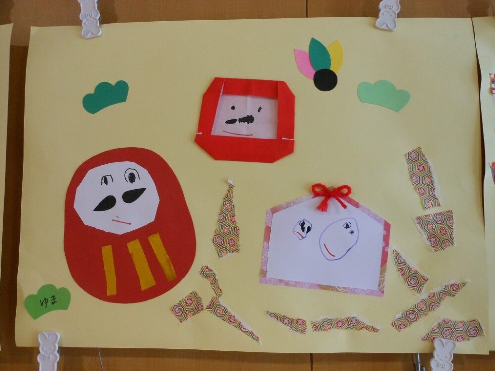 あけの保育園 お正月の製作 5歳児・きりん組。
