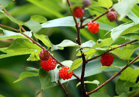 初夏の里山、赤い木の実・身近な生き物不思議生活コウゾ、ナワシロイチゴ、ニワトコ。