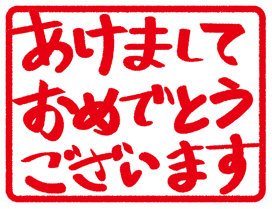 年賀状素材 あけましておめでとうございます・はんこ文字イラスト角判スタンプ。