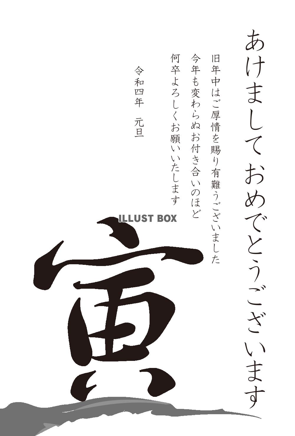 4_2022・年賀状_寅漢字・筆書き・縦:イラスト無料。