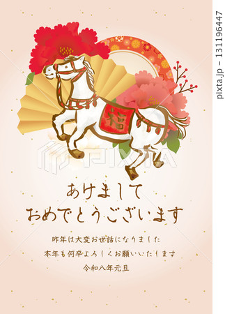 和風-N25C203 個別レイアウト 年賀状印刷なら挨拶状.com 2026年 午年版。