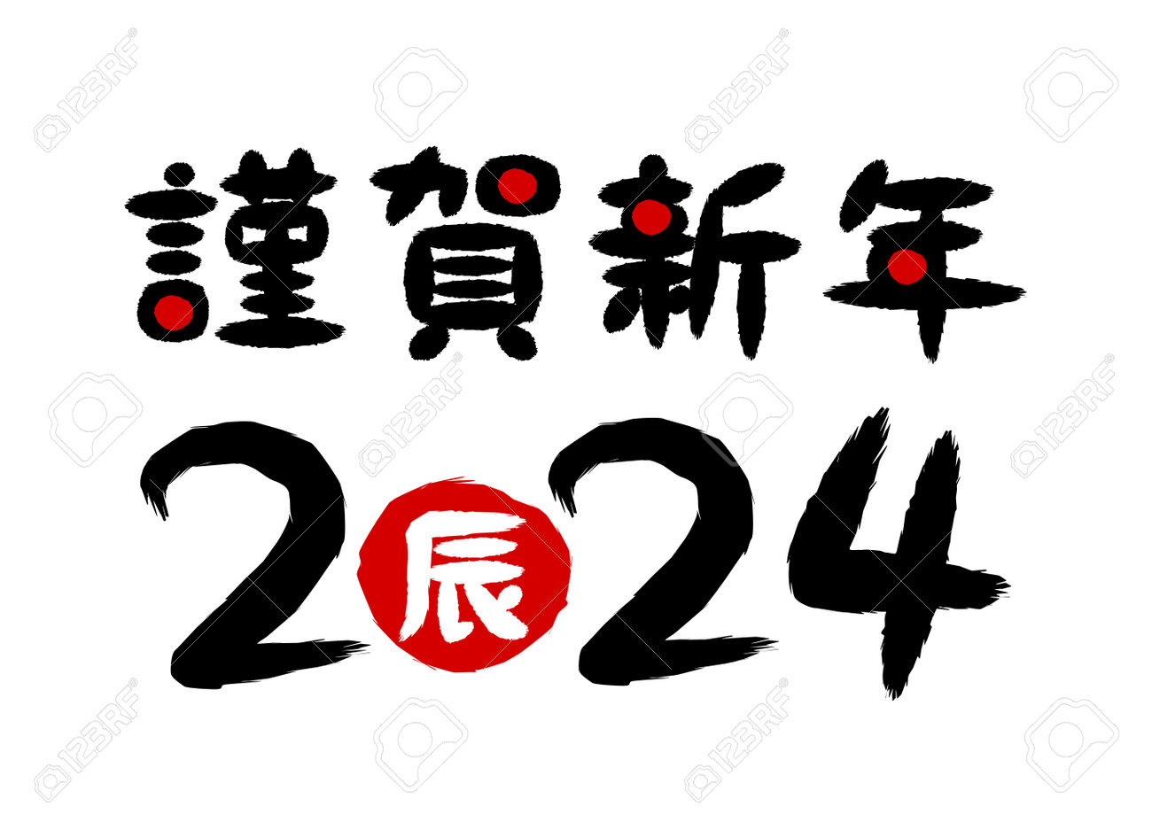 明けましておめでとうございます 令和六年辰年の筆文字:イラスト無料。