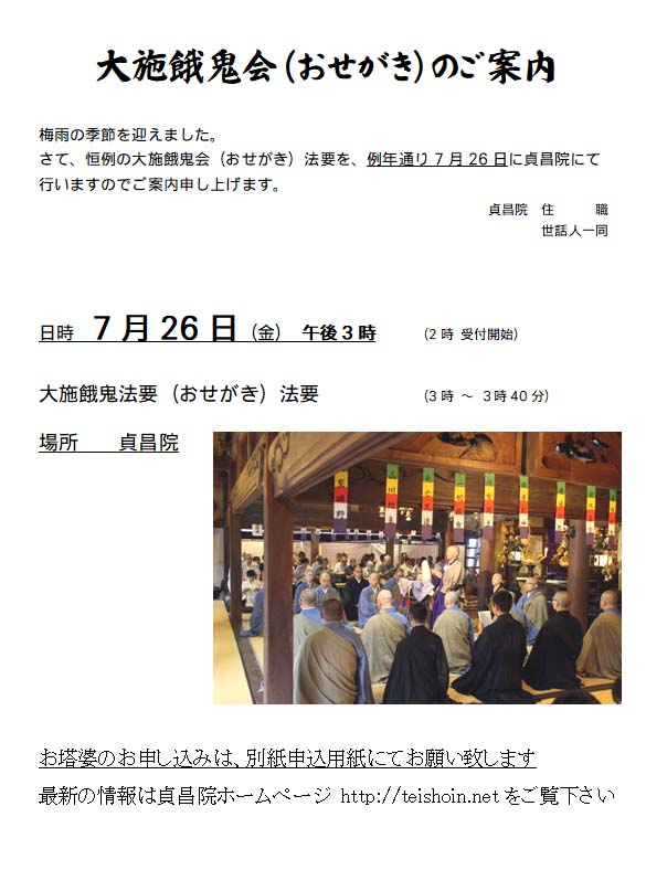 Teishoin's Digital Photo Log: 大施餓鬼のご案内を発送しました。