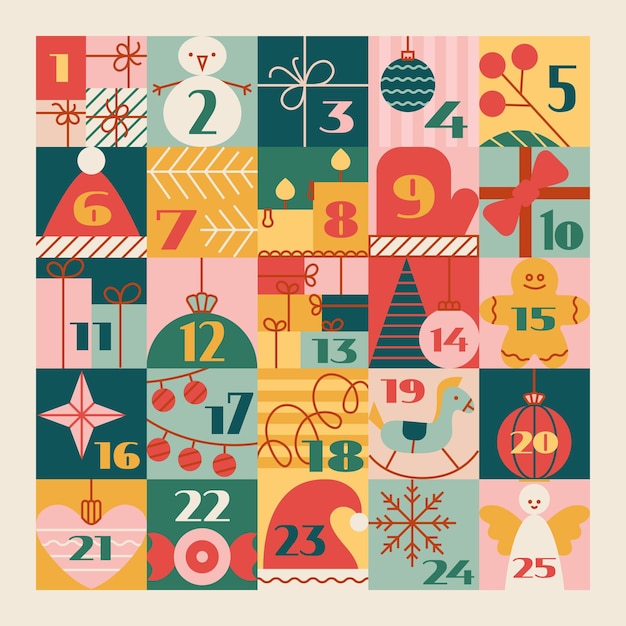 面白いアドベントカレンダー無料ベクトル素材。
