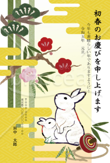 うさぎ年 年賀状テンプレート:イラスト無料。