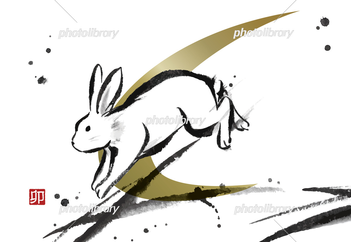 年賀状素材 卯年 絵筆で描いた墨絵風のお洒落なウサギのイラスト 手描きのアナログ風イラスト イラスト素材7085839- フォトライブラリ。