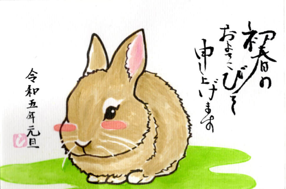 2023年卯 うさぎ 年 年賀状デザインのイラスト⓳ 無料無料ペットイラスト Pet-illust 犬・猫・鳥・ペットイラストぬりえ・年賀状 ・カレンダーイラスト多数無料。