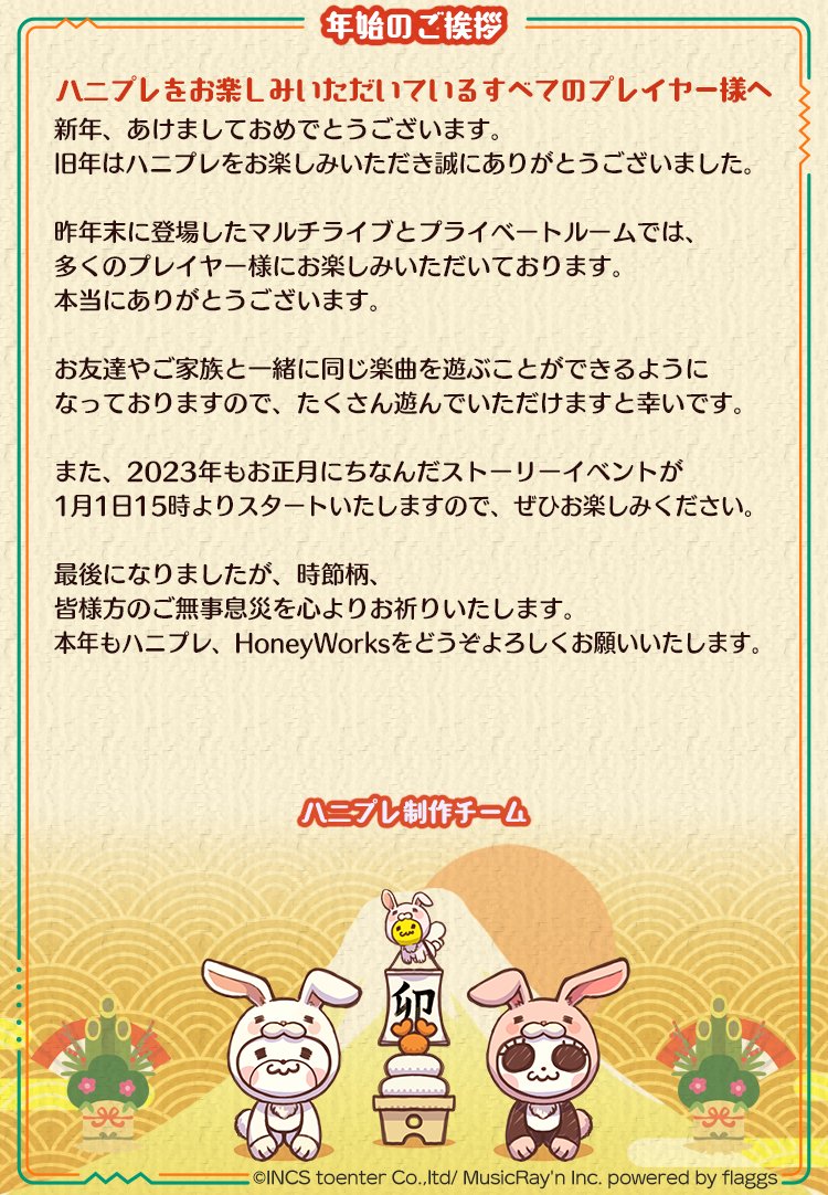 HoneyWorks公式リズムゲーム┗∵┓ على X: " 年始のご挨拶新年あけましておめでとうございます。 ハニプレ制作チームより、新年のご 挨拶をさせていただきます。ぜひご一読いただけますと幸いです。 本年もハニプレ をよろしくお願いいたします。 https:t.co。