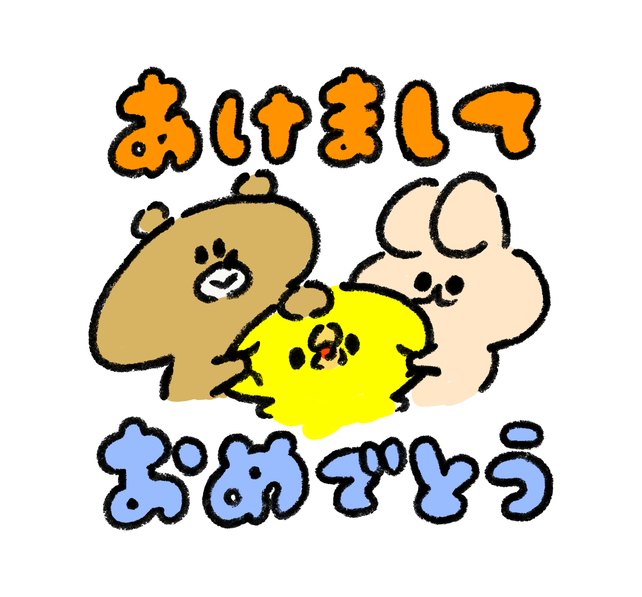 あけましておめでとう」のメッセージを伝えるひよこと熊とうさぎのイラストゆるくてかわいい無料イラスト・アイコン素材屋「ぴよたそ」。