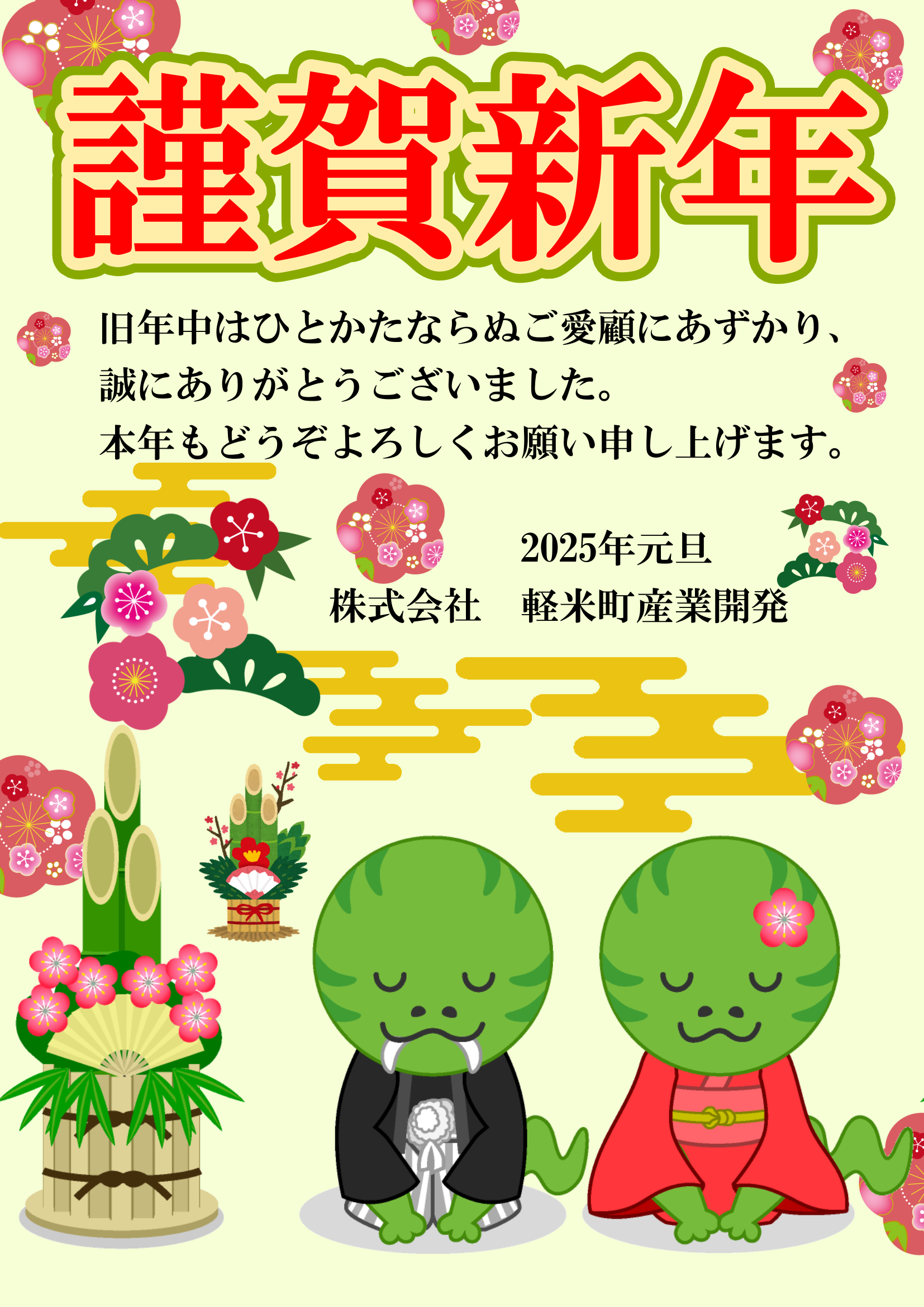 2025年巳年の年賀状テンプレート2 :イラスト無料。