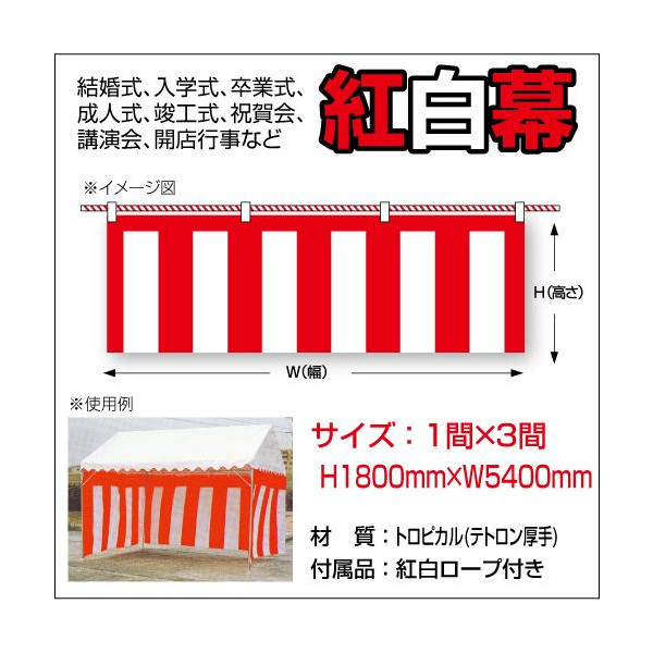 紅白幕 綿 180cmX5.4m 3間: 日本の四季・行事の店 木瓜屋 もくこうや - 通販 - Yahoo!ショッピング。