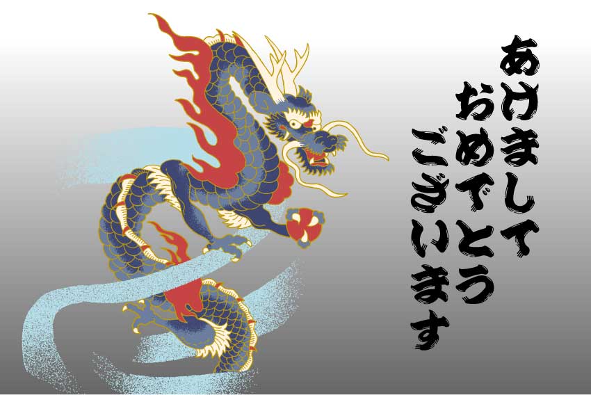 辰年 龍 ドラゴン 年賀状素材:イラスト無料。