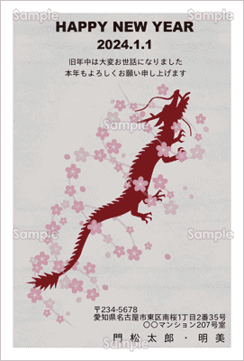 2024年 花札のようなタッチの昇り竜の年賀状 bizocean ビズオーシャン。
