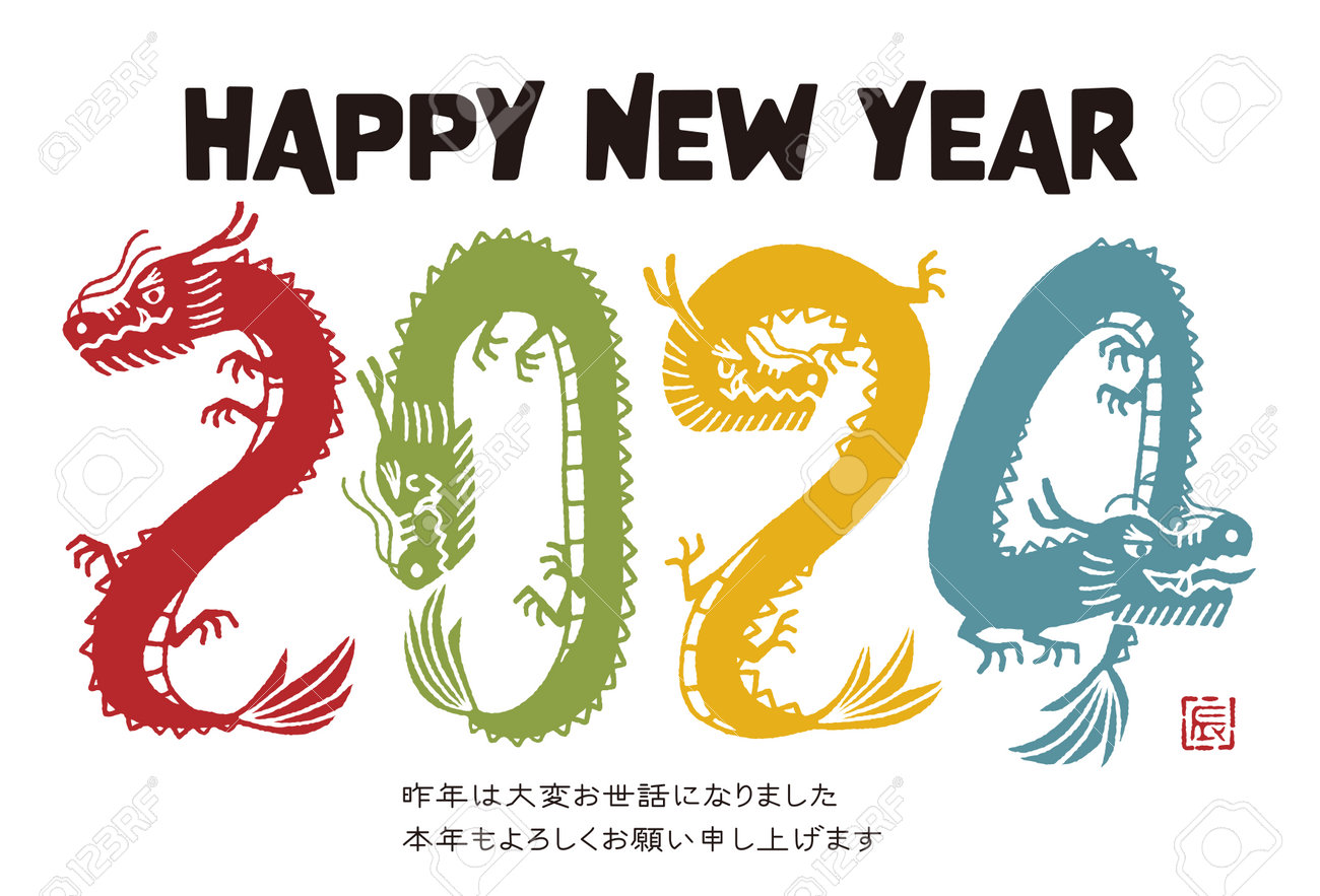 龍 竜とHappy New Year 辰年 年賀状無料イラスト の無料イラストフリーイラスト素材集 ジャパクリップ。