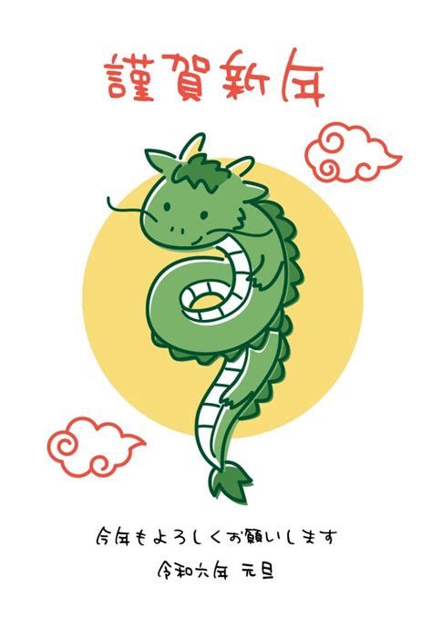 年賀状 巳年 グリーンの龍が可愛いイラスト年賀状 - 年賀状2025無料イラスト素材集。