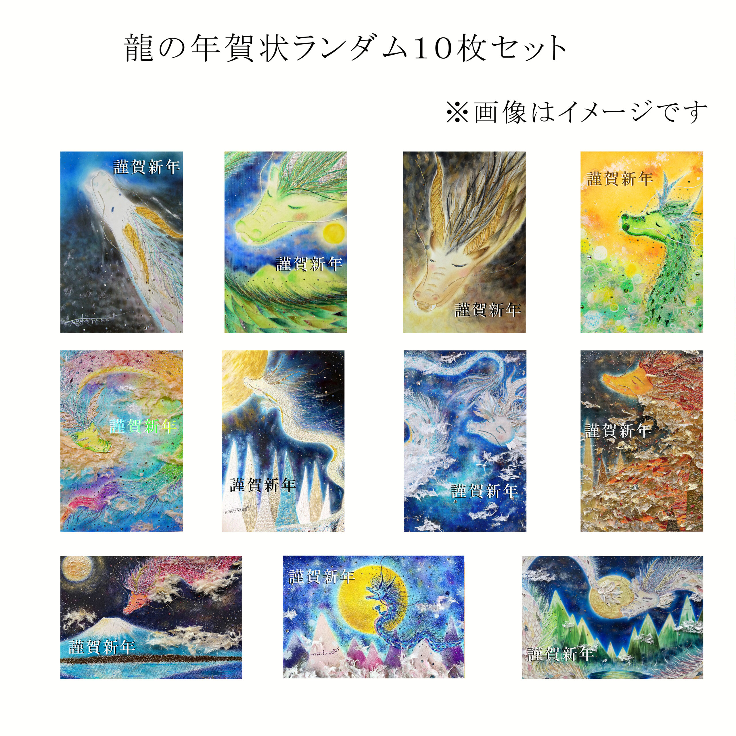 龍の年賀状 ~ランダム10枚セット~ 龍のイラスト 竜 龍神 ギフト 歓迎 送別 2024年賀状 - やのともこ shop&gallery。