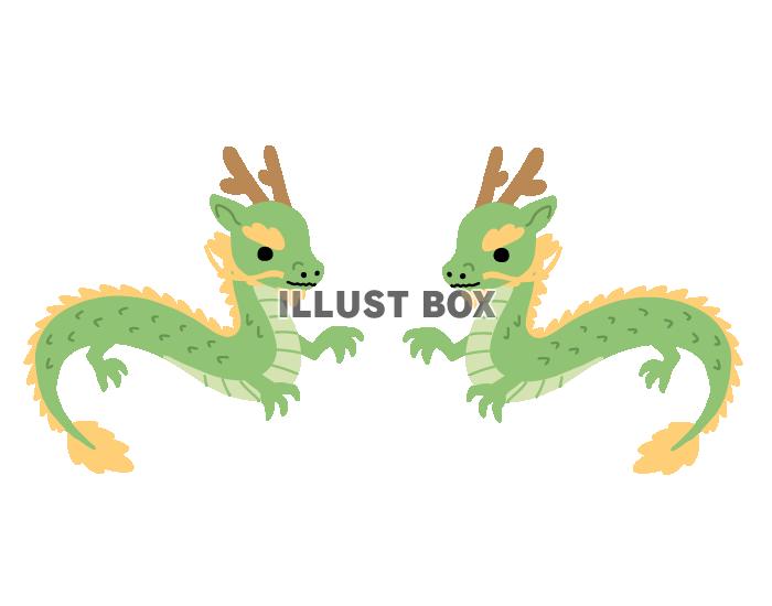 緑色のかわいい竜の年賀状イラストのフリー素材イラストイメージ。