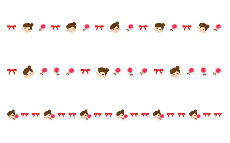 母の日・リボンとお母さんの罫線イラスト無料の線・ライン素材 飾り罫線イラスト.com。