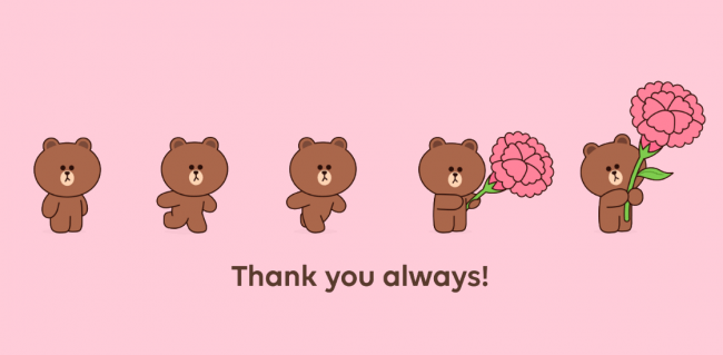 LINE」のトークで、お母さんに感謝の気持ちを伝えよう 母の日に関連したキーワード送るとブラウンがカーネーションをお届け!LINE株式会社の プレスリリース。