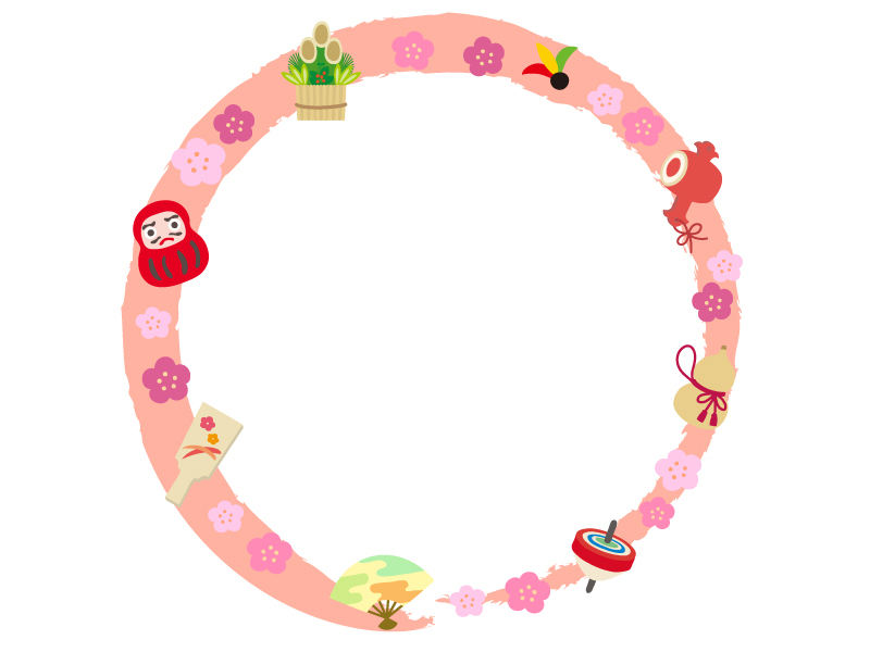 お正月・年賀の縁起物の筆線円形フレーム飾り枠イラスト無料イラスト かわいいフリー素材集 フレームぽけっと。