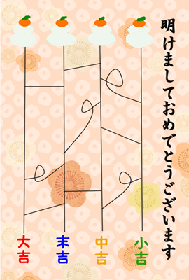 BV0110おみくじあみだくじ_梅年賀状・喪中はがき 素材年賀状・無料ダウンロード年賀状ならブラザ。