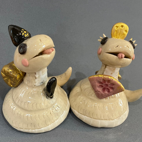 干支の置物② 2025 令和7年 巳年 ヘビ 蛇 ヘビオ 陶器 玄関飾り その他置物 TARACO 通販 17952579Creema クリーマ。