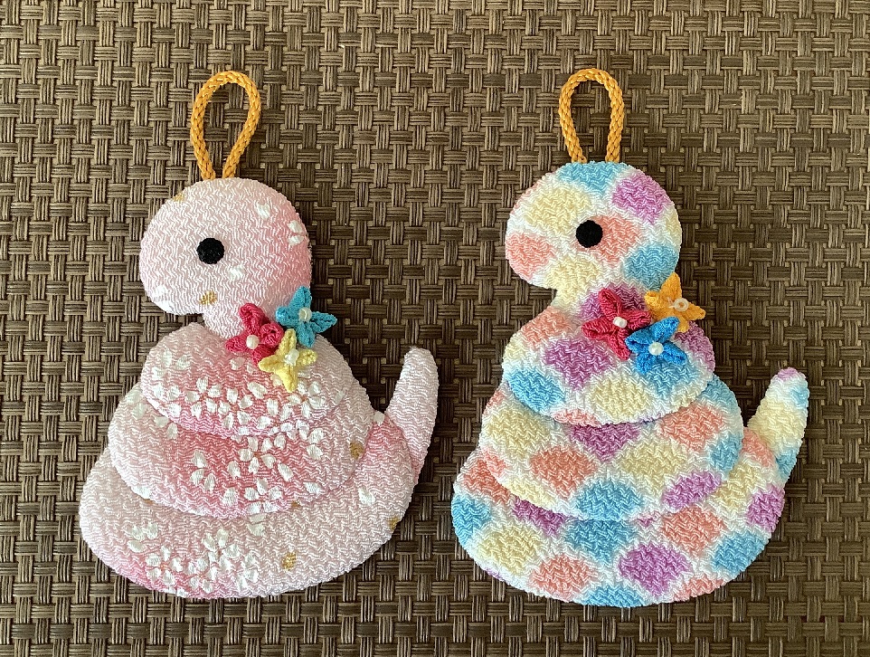 巳年 白ヘビ干支飾り作り方ちりめん細工。