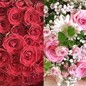 薔薇×ガーベラ+桔梗の花束プロポーズフラワーショップ。