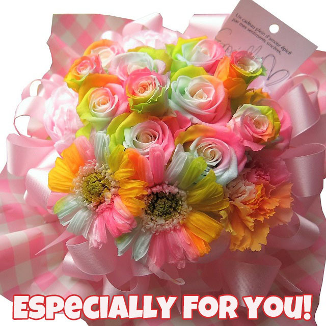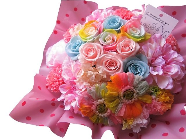 プロポーズ 彼女 レインボーローズ プリザーブドフラワー入り レインボーガーベラ レインボーカーネーション 花束風 プロポーズ プレゼントギフトに人気 -フラワーガーデン リーブス - プレゼント&ギフトのギフトモール。