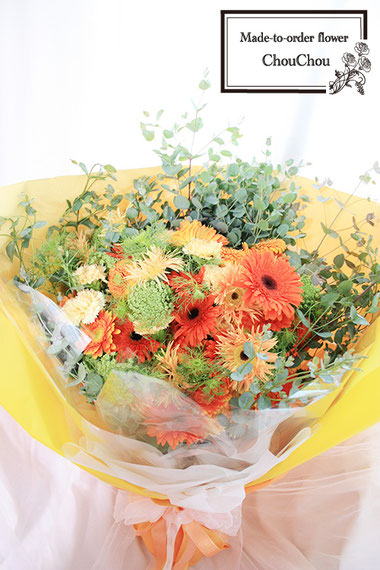オレンジのガーベラの花束プロポーズフラワーショップ。