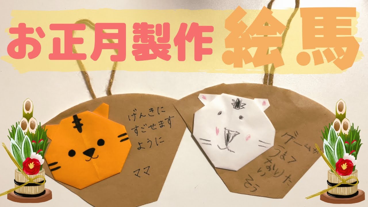 折り紙 元保育士ママと作るお正月製作「絵馬作り」〜簡単に折れるトラの折り方〜Origami tiger tutorial。